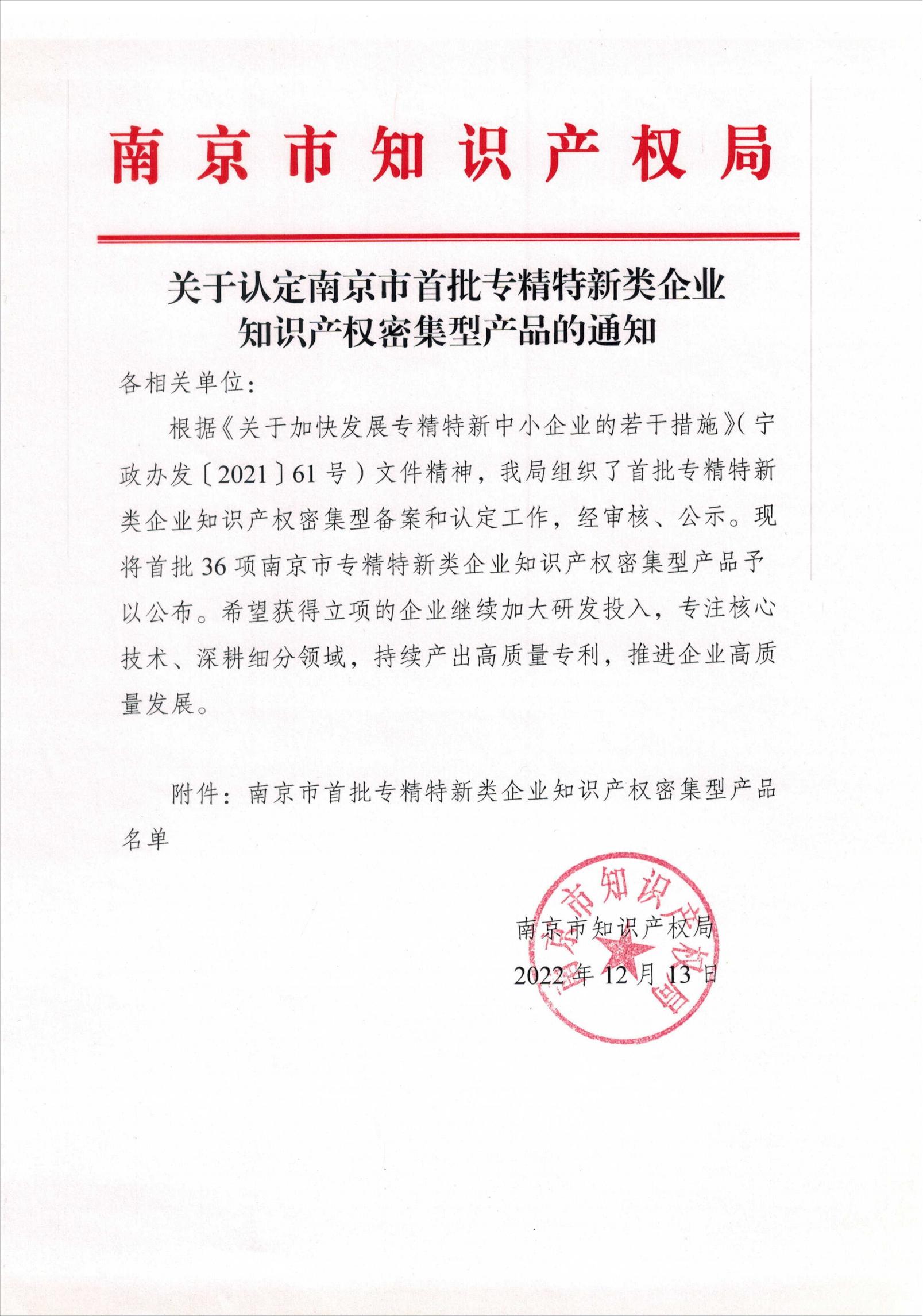 知識產(chǎn)權密集型產(chǎn)品認定是南京市在全國范圍內率先支持“專(zhuān)精特新”企業(yè)高質(zhì)量發(fā)展的新舉措,首批認定共計36項產(chǎn)品,涵蓋新材料、生物醫藥及高性能醫療器械等20多個(gè)領(lǐng)域。