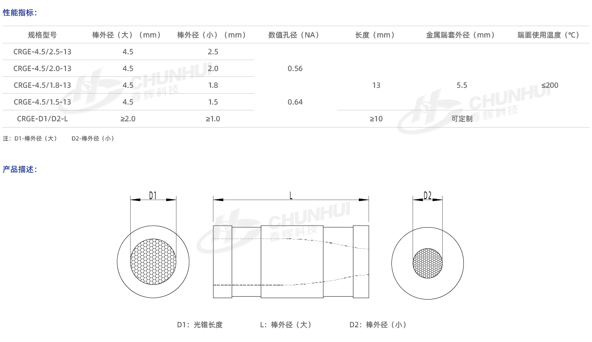 單芯錐:?jiǎn)我焕w維錐形光纖棒;