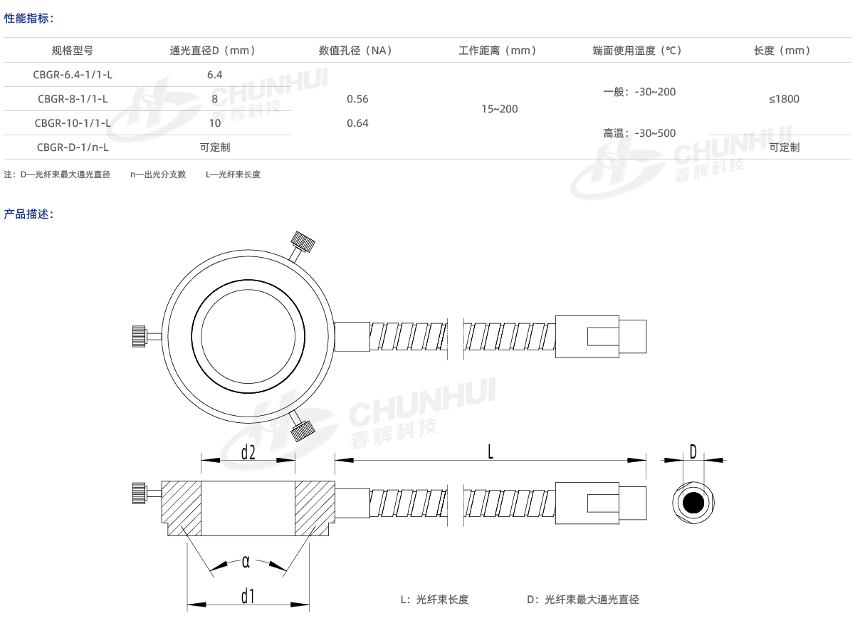 多種芯徑、數值孔徑可供選擇;