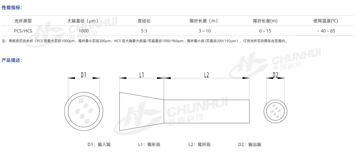 小芯徑端,可匯聚光的能量,增加能量密度,提高系統的穩定性和靈活性。